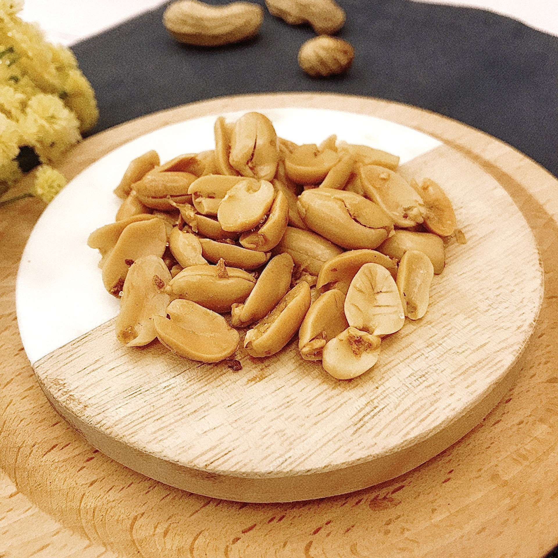嚴選台灣北港花生製作,蒜頭下去爆香翻炒,吃起來蒜香入味,